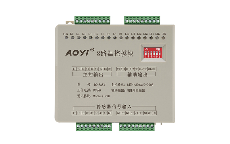 本溫度控制模塊集成了多路溫度采集、多路主輸出和輔助自由輸出。具有PID,自整定,手動(dòng)輸出,上位機(jī)控制等多種控制方式,能方便靈活的組成各種溫控系統(tǒng)。該產(chǎn)品可用于各種需要溫度控制的場(chǎng)合,特別適合于與PLC,觸摸屏組成一體化控制系統(tǒng)或與計(jì)算機(jī)組成分布式控制系統(tǒng)。同一模塊,多根溫度傳感器(例熱電偶)獨(dú)立輸入,實(shí)際多路獨(dú)立溫度采樣;多路獨(dú)立控制輸出(輸出信號(hào)有模塊量,邏輯電平開關(guān)量輸出等,其信號(hào)不同所控制的固態(tài)繼電器不同,即必須與相同控制信號(hào)的固態(tài)繼電器匹配,控制固態(tài)繼電器的輸出電壓或開關(guān)來實(shí)際恒溫。